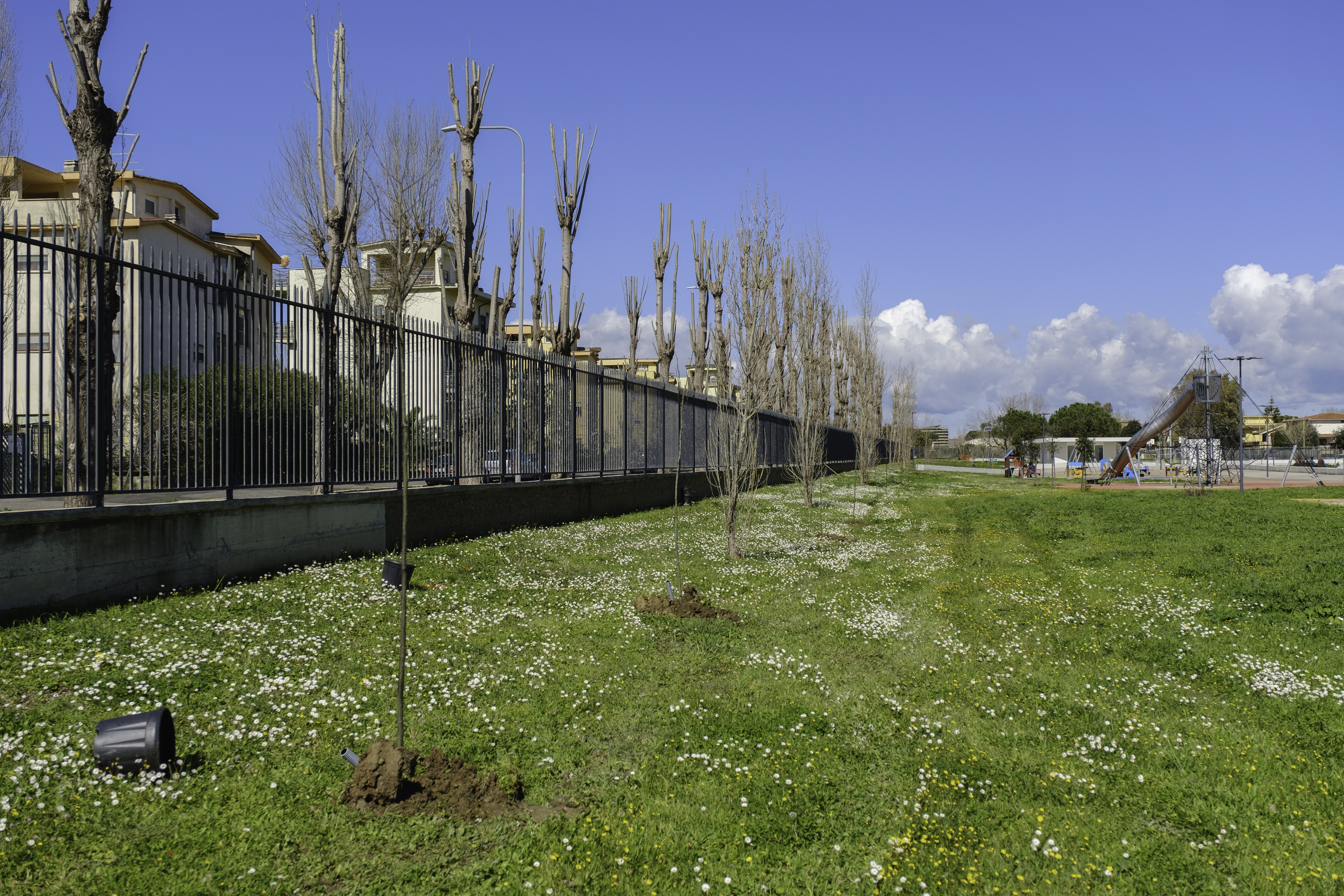PIANTUMAZIONE NEL PARCO “TOMMASO FORTI” DI FIUMICINOPer offrire un contributo concreto alla valorizzazione del territorio in cui operano, Aeroporti di Roma e Lagardère Travel Retail Italia, Società che gestisce vari duty free negli aeroporti romani, hanno deciso di investire in interventi di riforestazione, piantumazione e riqualificazione ambientale. Questo progetto fa parte di un percorso più ampio avviato nel 2021, in cui le due società si impegnano a sostituire progressivamente le buste di plastica, vendute in alcuni punti vendita gestiti da Lagardère Travel Retail Italia nei due aeroporti romani, con sacchetti di carta o riutilizzabili.L'intervento presso il Parco Tommaso Forti di Fiumicino, realizzato nel marzo 2024, ha previsto la piantumazione di alberi ad alto fusto lungo tutto il perimetro del parco, confinante con strade ad alta frequentazione, creando una barriera verde per ridurre la presenza di polveri sottili e l'inquinamento acustico. All'interno del parco, invece, la creazione di isole arborate contribuirà a mitigare gli eccessi termici estivi grazie alle zone d'ombra che ne deriveranno. Oltre alla piantumazione di alberi, l’iniziativa ha incluso interventi di recupero mirato su altre aree del parco, come l'architettura del giardino, la conservazione dell'identità del luogo e la creazione di spazi fruibili rinnovati. Gli interventi, congiuntamente all’installazione di dieci set per pic-nic donati da ADR, miglioreranno la fruizione del parco per i numerosi cittadini e bambini che lo frequentano quotidianamente.