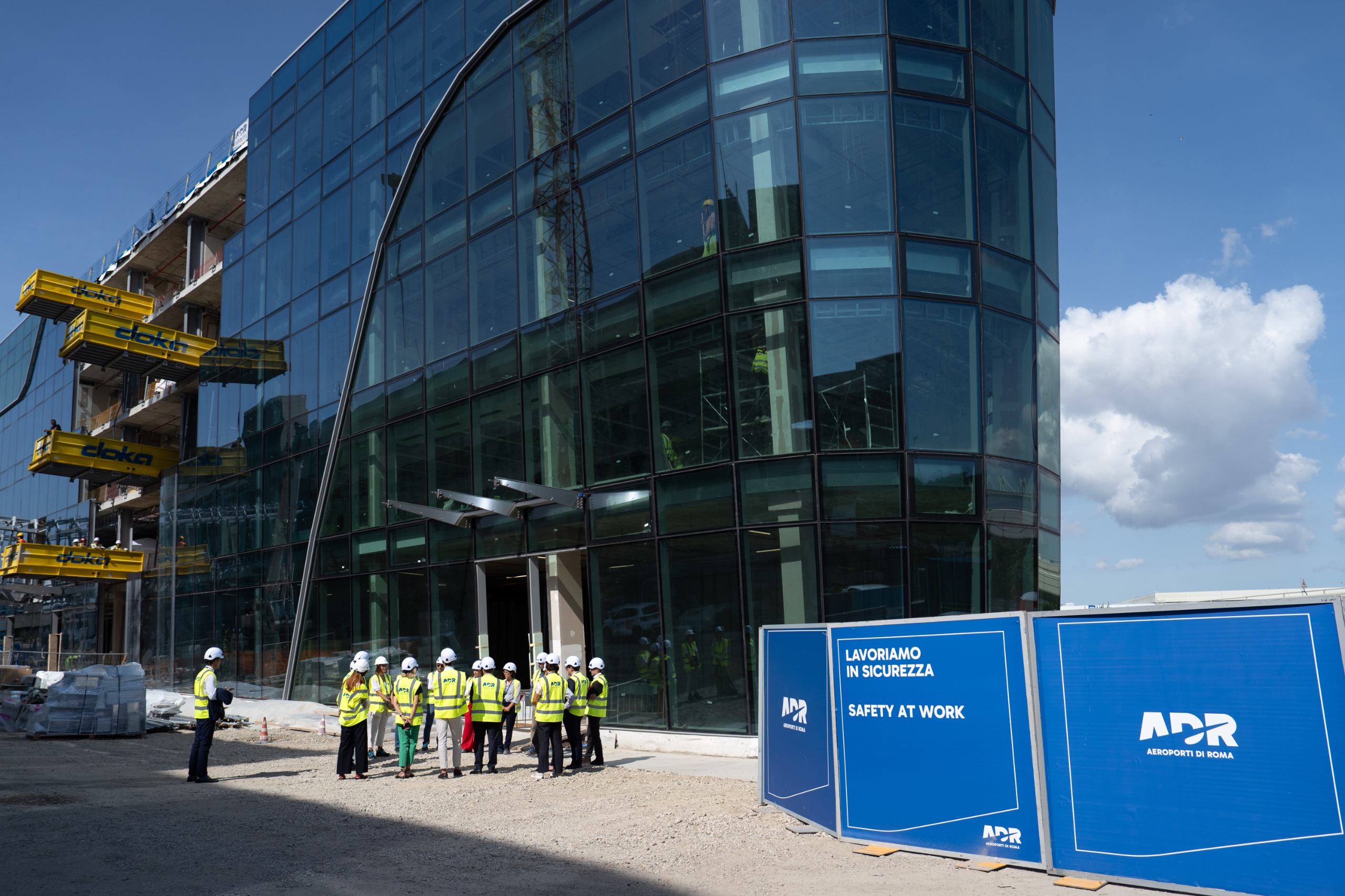 The intended use includes offices, coworking spaces, common areas and services, with a floor dedicated to Rent-a-Car activities and a direct connection to the multi-storey car park through a pedestrian bridge. The architecture is characterized by inclined glazed façades, flexible layouts, and a design oriented toward LEED Gold certification. The final design and detailed design of the new office tower were approved not only by the Italian Civil Aviation Authority but also by the Ministry of the Environment and the Ministry of Culture, in accordance with the provisions of the Environmental Impact Assessment Decree issued for the broader airport completion project of Fiumicino.