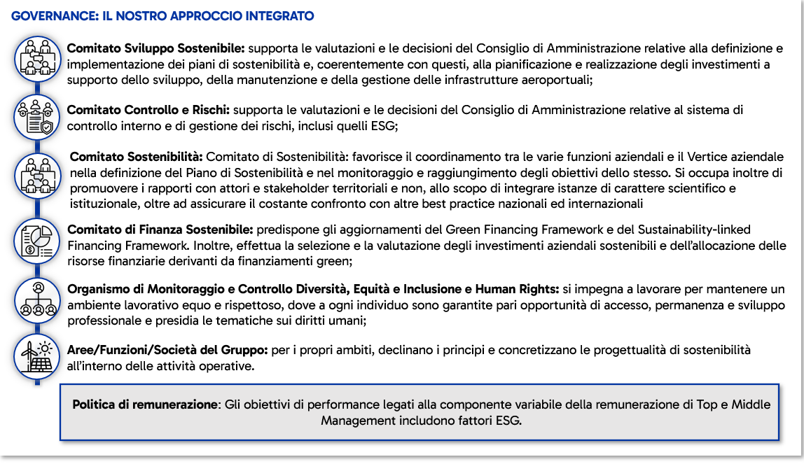 Il modello di gestione della Sostenibilità adottato da ADR si innesca nel sistema di governance, confermando la gestione integrata del tema.