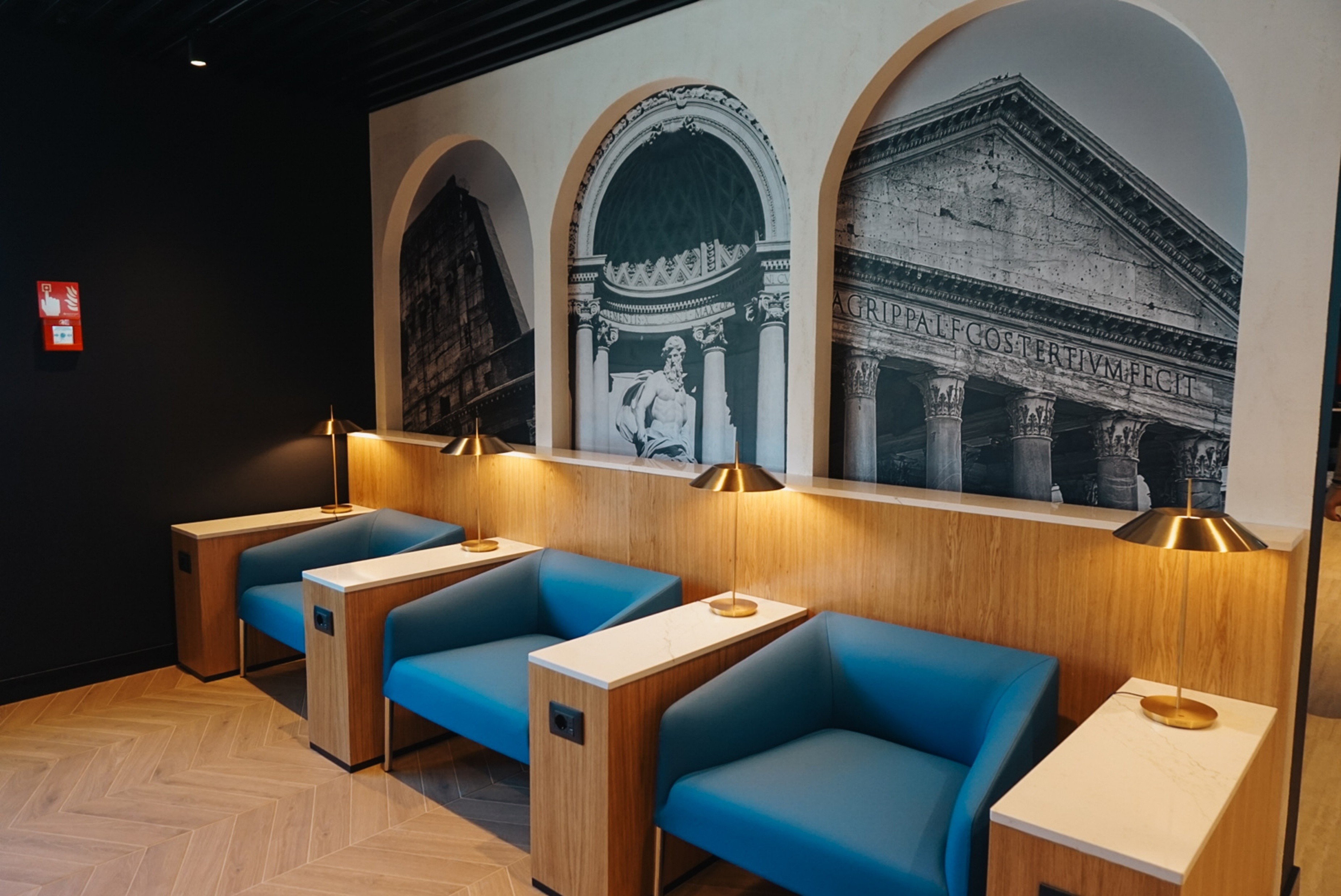 Situata al primo piano dell’area di imbarco A, Prima Vista Domus Lounge accoglie i passeggeri in uno spazio elegante e moderno, ispirato al design italiano. Un ambiente funzionale e raffinato, ideale per rilassarsi, lavorare o godersi una piacevole pausa a prima del volo.