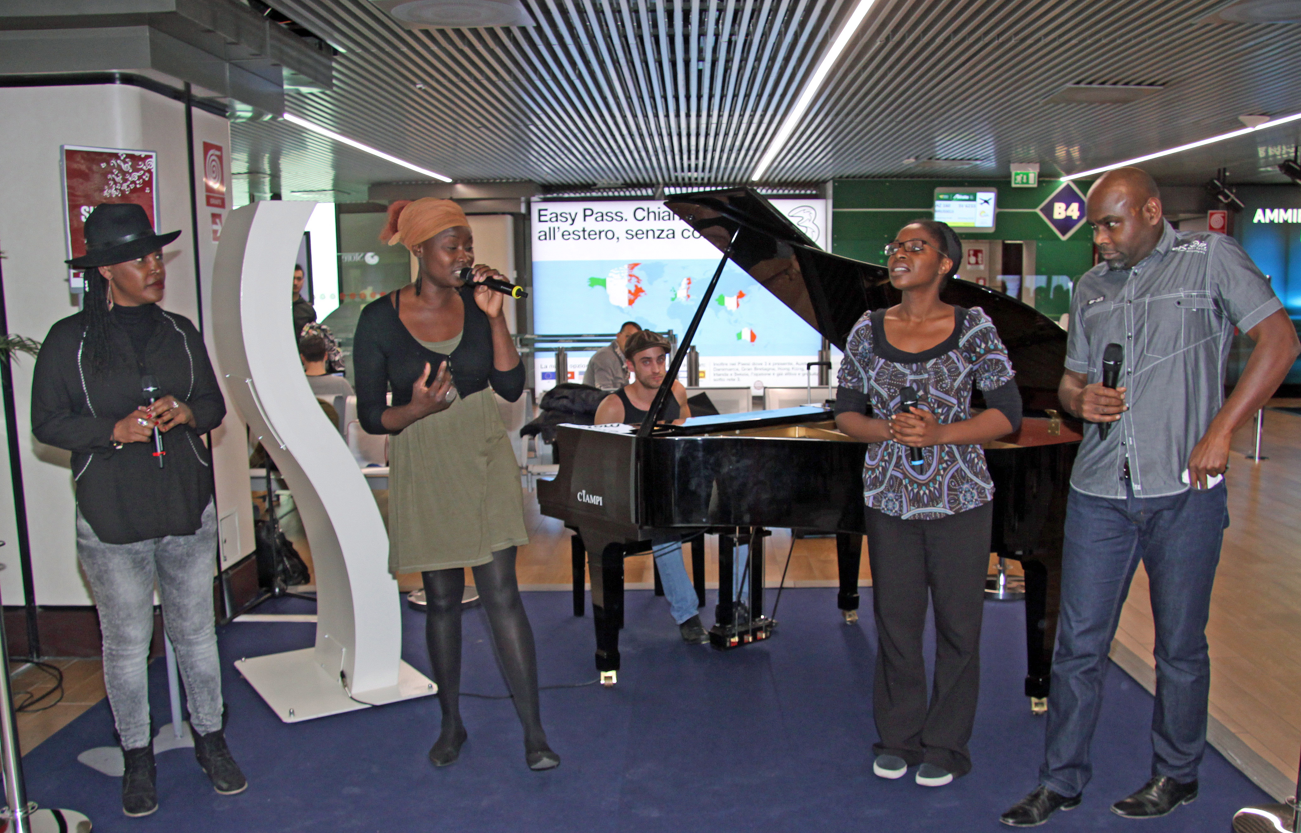 una serie di brani, all'interno dell'area imbarchi "B" del terminal 1, fra i quali classici come "O when the saints go marching in", il coro Gospel diretto dalla cantante Emma Lamdij, che insieme con il suo gruppo si esibirà anche all'Auditorium Parco della Musica di Roma.