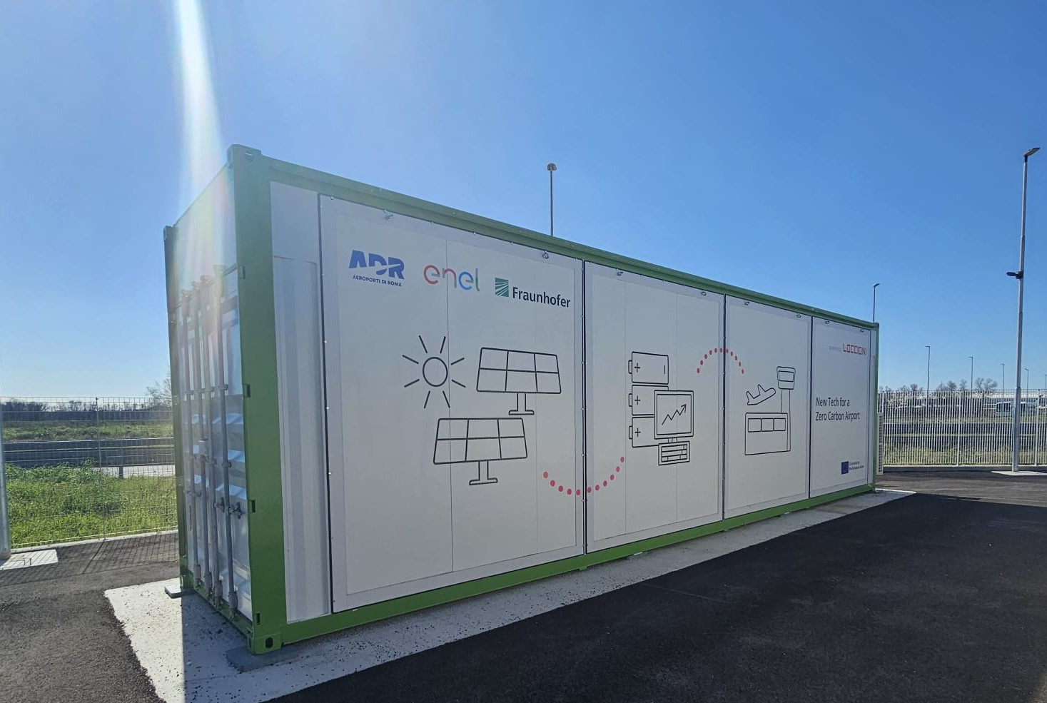 Aeroporti di Roma’s development plan for Leonardo da Vinci Airport foresees the installation of the largest solar photovoltaic (PV) array inside any airport infrastructure across Europe. The objective of the PIONEER project is to store excess energy produced during the day by the solar PV plant, returning it when most needed to cover the peak demand of airport facilities during the evenings, when solar energy becomes unavailable.